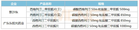 表1:目前市場(chǎng)上西格列汀二甲雙胍的產(chǎn)品情況